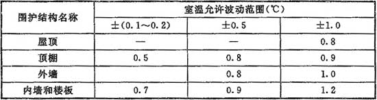 表8.1.7 工藝性空氣調(diào)節(jié)區(qū)圍護(hù)結(jié)構(gòu)最大傳熱系數(shù)K限值[W/(m2·℃)]