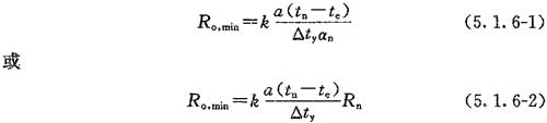 5.1.6 除外窗、陽臺門和天窗外,設(shè)置全面供暖的建筑物,其圍護結(jié)構(gòu)的最小傳熱阻不得小于按下列公式計算所得值: