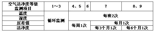 C.0.1 潔凈室的凈化空氣監測頻數宜按表C.0.1的規定進行監測。